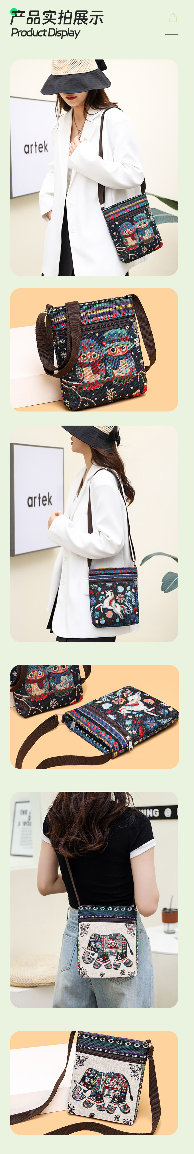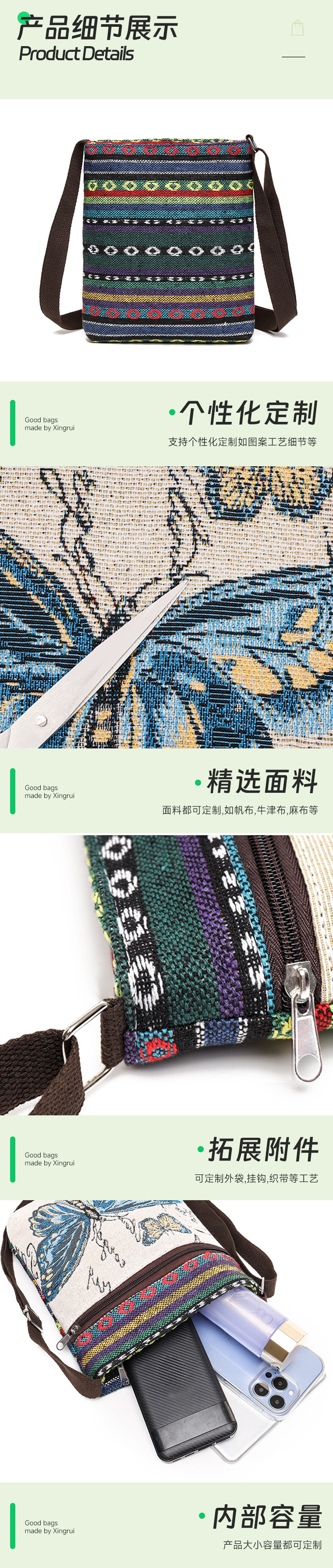 兴瑞时尚女生包可定制logo独特刺绣风格女士单肩斜挎包源头厂家