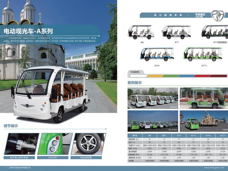 中菲宜达绿色电动观光车14-15座超长续航爬坡力强加装豪华软座椅