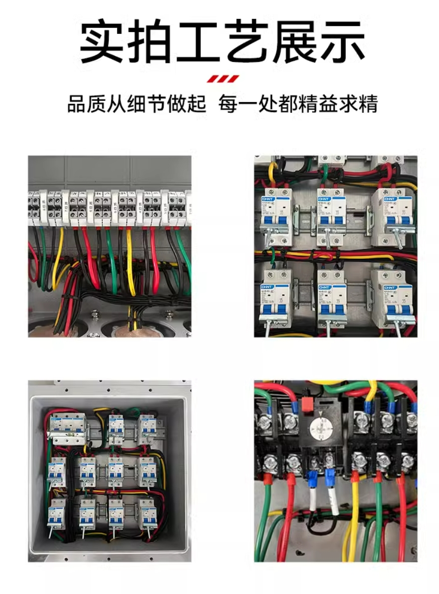 4,内装高分断小型断路器或塑壳式断路器,通过操作壳盖上的手柄而实现分合;