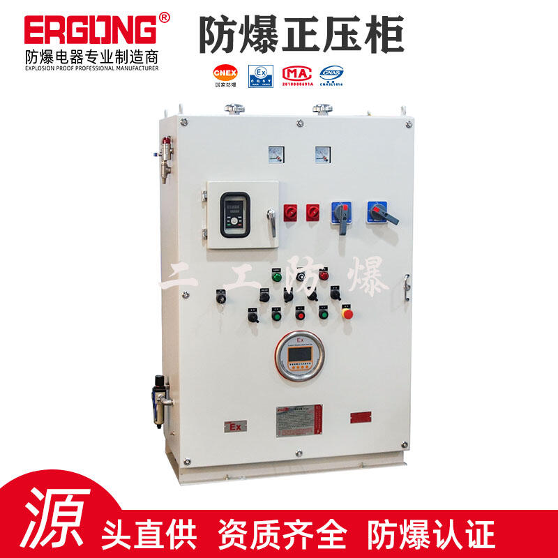 1.防爆正压柜在自动控制系统的控制下,正压腔内压力高于正压腔外的压力,形成微正压的安全小环境,从而阻止了可燃性危险气体进入正压腔内,对于内装的普通仪表和电器元件产生的电弧、火花进行完全的隔离,保障了现场的安全允许。