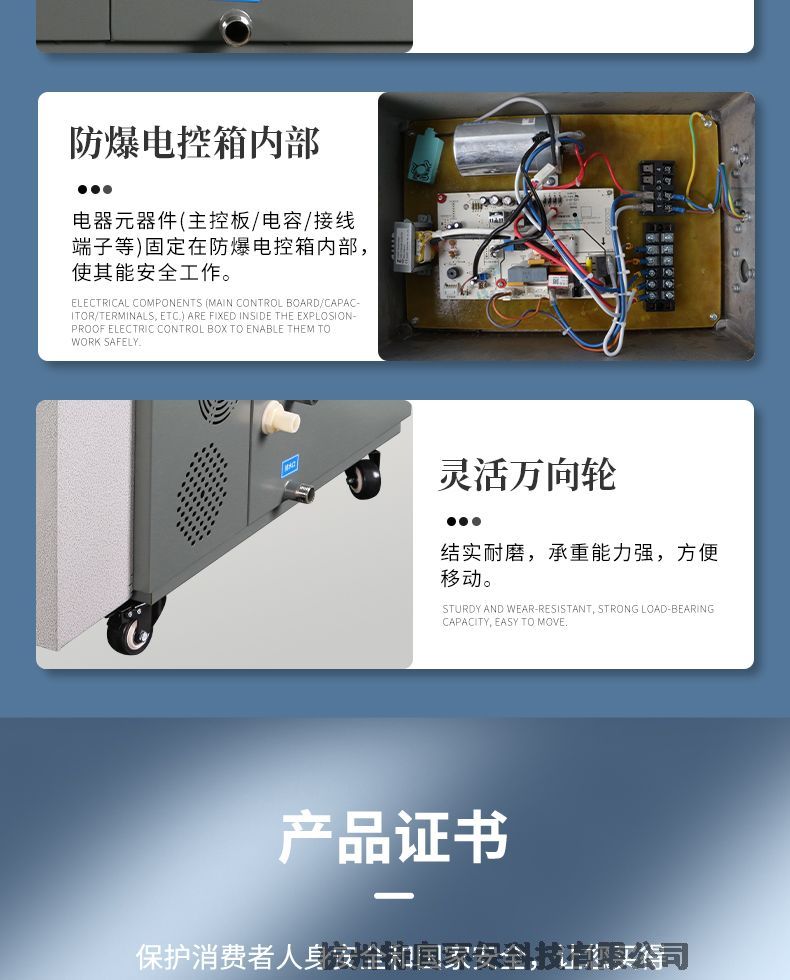 通过特殊防爆技术加工处理,可广泛应用于1区,2区防爆级别,涵盖国防、科研、石油、化工、医药、加工制造、生物制药等多种行业,为存在ⅡA、ⅡB级,T1~T4组可燃性气体、蒸汽与空气混合形成的易引发爆炸的危险场所,并有湿度控制要求场所设计的特种加湿设备,