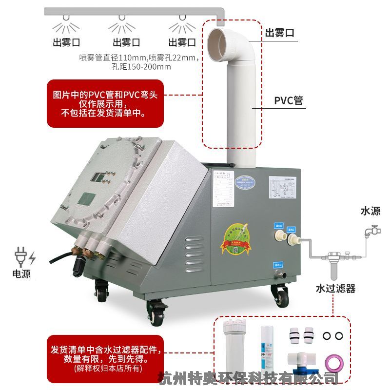 危化库加湿防爆喷雾加湿机,防爆超声波加湿机,百科特奥防爆加湿机BTaw -03通过特殊防爆技术加工处理,可广泛应用于1区,2区防爆级别,涵盖国防、科研、石油、化工、医药、加工制造、生物制药等多种行业,为存在ⅡA、ⅡB级,T1~T4组可燃性气体、蒸汽与空气混合形成的易引发爆炸的危险场所,并有湿度控制要求场所设计的特种加湿设备,