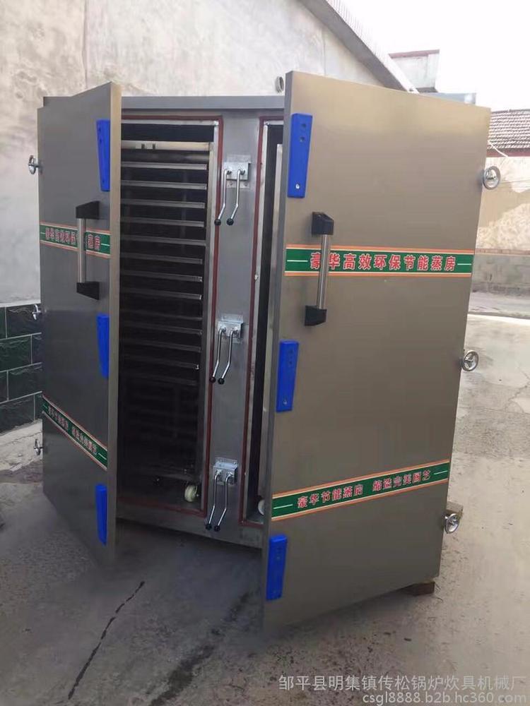大型馒头蒸房,又称双门蒸箱,蒸汽蒸房。是指利用锅炉蒸汽加热,蒸煮米饭,馒头,鸡鸭鱼肉,米糕,等食品的大型厨房蒸煮设备。整个箱体材质为不锈钢所,一般多用201不锈钢制造。也可根据客户需求定制304材质。大型蒸房多用于酒店、部队、学校工厂、个体馒头房等馒头产量需求量大的单位。馒头蒸房除了用来蒸米饭、馒头、包子以外,还可蒸猪肉、药材,还有专门用来蒸海鲜的海鲜蒸柜,也可以炖汤。
