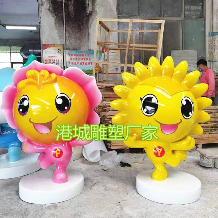 卡通公仔各种造型雕塑装饰城市环境、城市广场、城市商场、城市小区、城市街道等公众的生活空间,港城雕塑厂家把玻璃钢卡通公仔雕塑制作成多种不一样的玻璃钢卡通造型,小到一个家居生活用品,这些元素所表现的内容极为 雕塑,表现的形式也是多姿多彩,它为我们所生活的环境创造了一种舒适而美丽的环境,它可以净化人心的心灵,更可以陶冶人们的情操,培养人们对于美好事物。