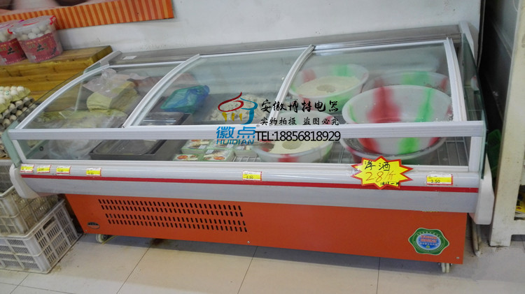 2、上面开槽设计,方便商家摆放鲜肉,也便利顾客挑选,展示效果好。佳伯鲜肉柜默认保鲜冷藏,也可以定做冷冻,低温展示鲜肉等生鲜食品
