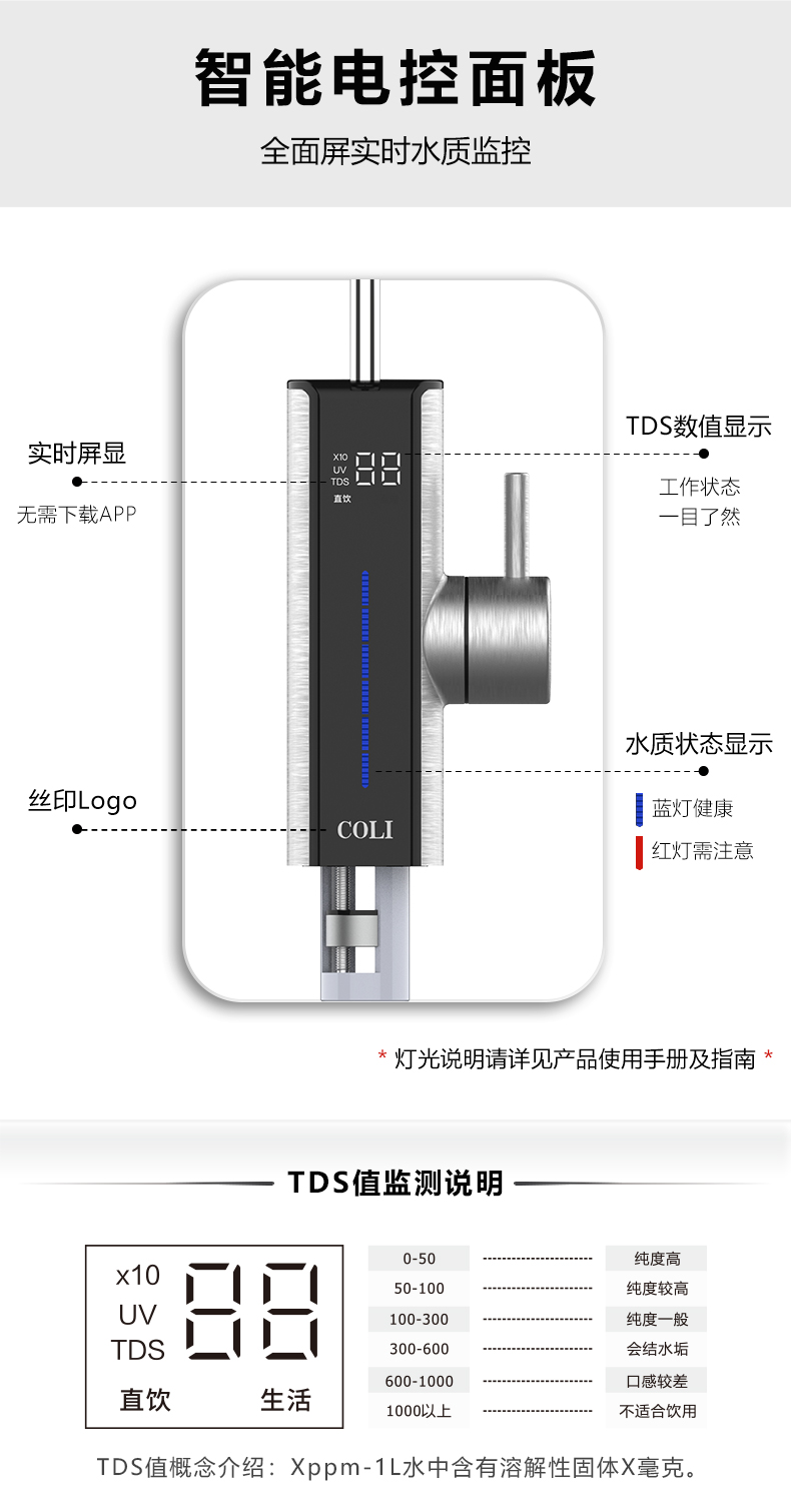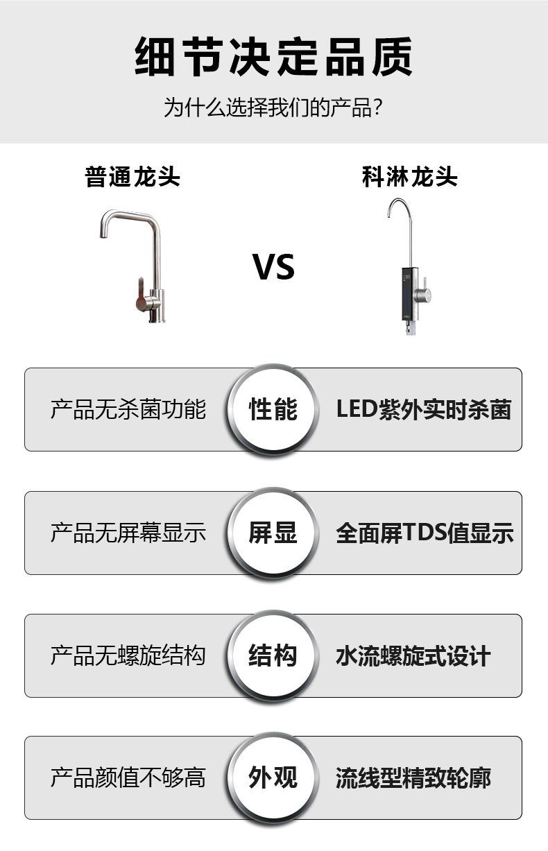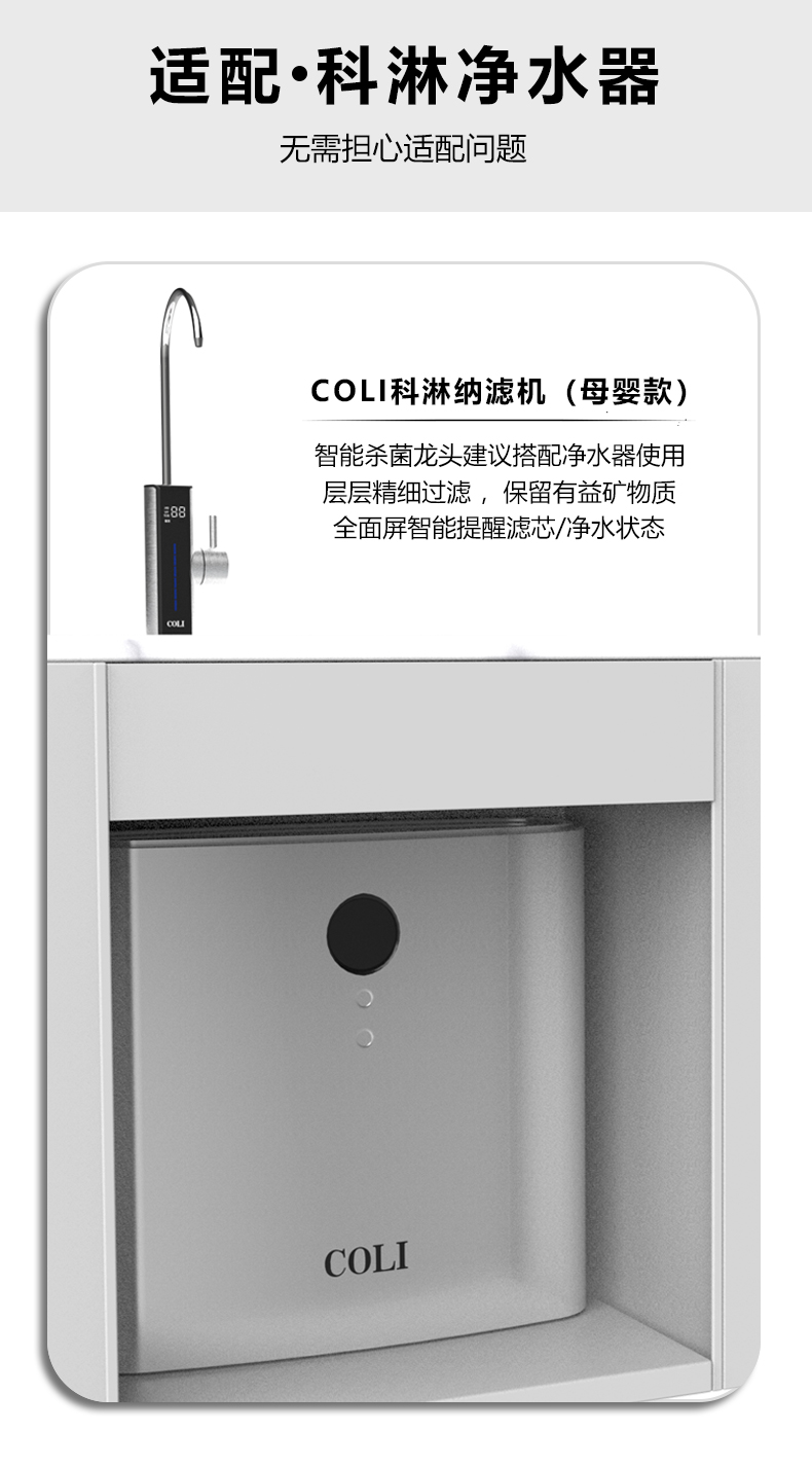 科淋杀菌水龙头UV进口杀菌灯珠,杀大肠杆菌可达99%,适配各种净水器