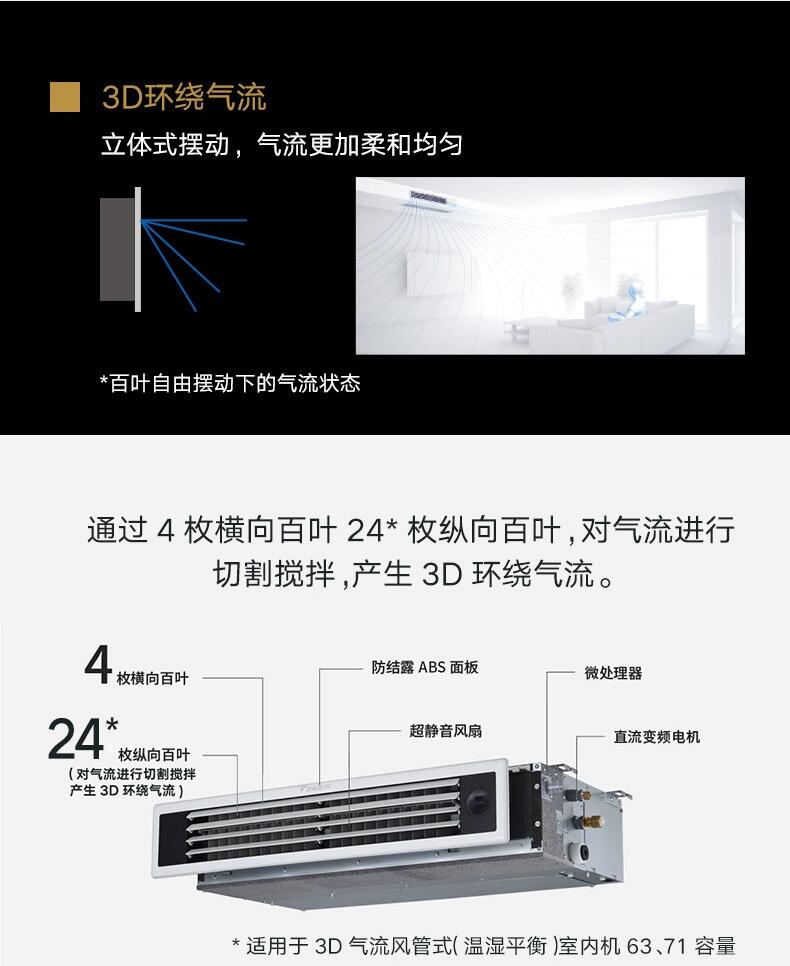 DAIKIN/大金中央空调3D气流风管机客厅空调家用变频室内机黑奢型