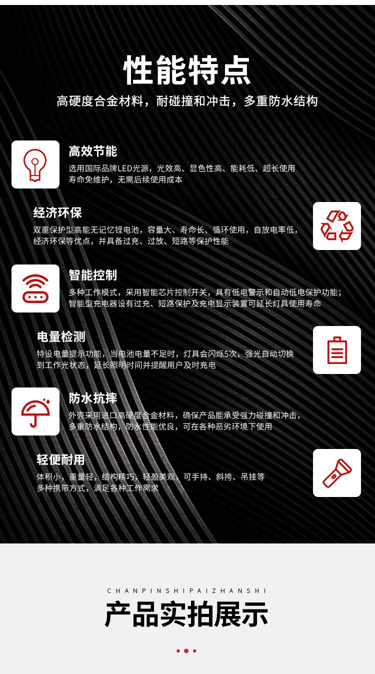 适用场所 | 铁路、航运、部队 、警察和工矿企业及各种野外工作场所作移动照明和信号指示 | ||