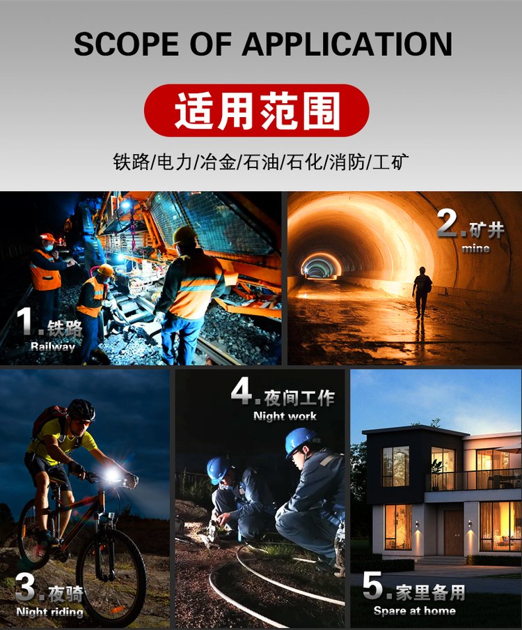 应用场景 | 消防应急,户外骑行,野外照明 | ||