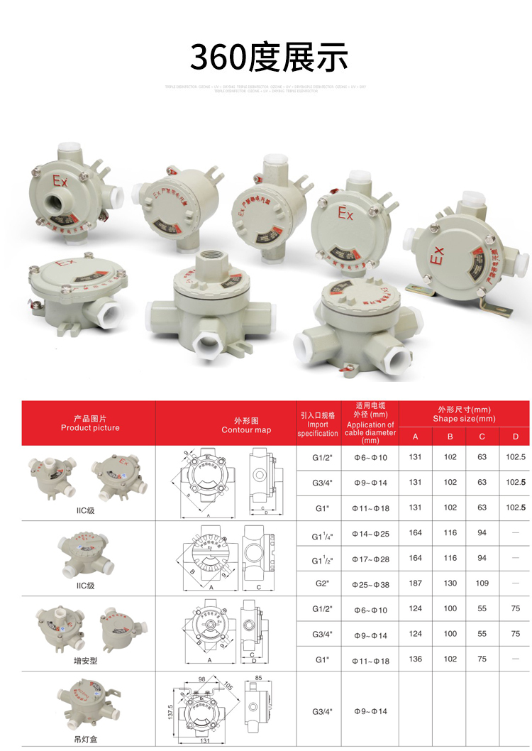 防尘防水不锈钢三通接线盒 M20*1.5 M25*1.5 1/2NPT螺纹订制加工 功率 | 10W | ||
