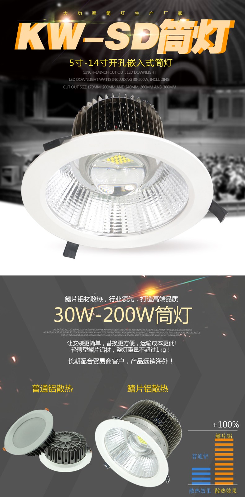 北京LED筒灯,LED嵌入式筒灯,大功率筒灯,50W筒灯 暗装LED筒灯 COB筒灯 嵌灯50W 嵌入式嵌灯60W LED节能嵌灯