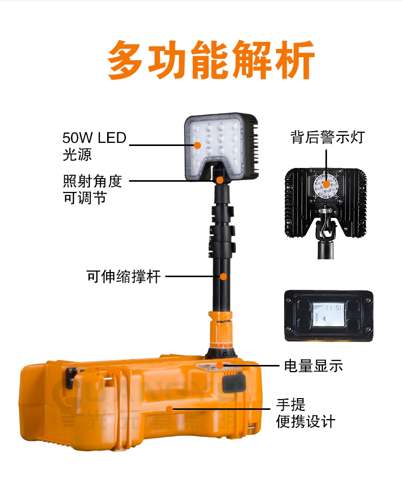 适用于铁路工务、电务、供电、运输等场所小范围检修、施工照明,同事也适用于电网、公消等行业小方位应急照明使用。