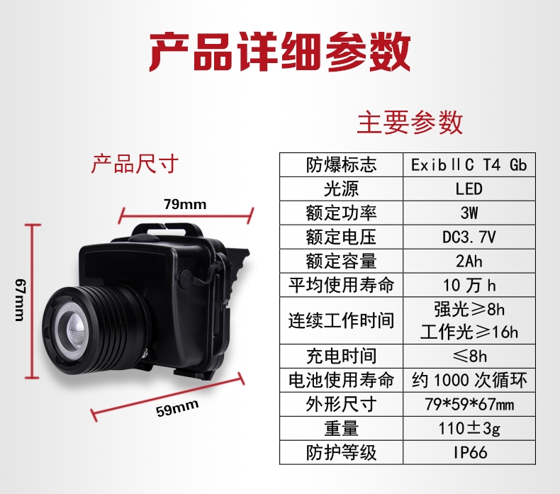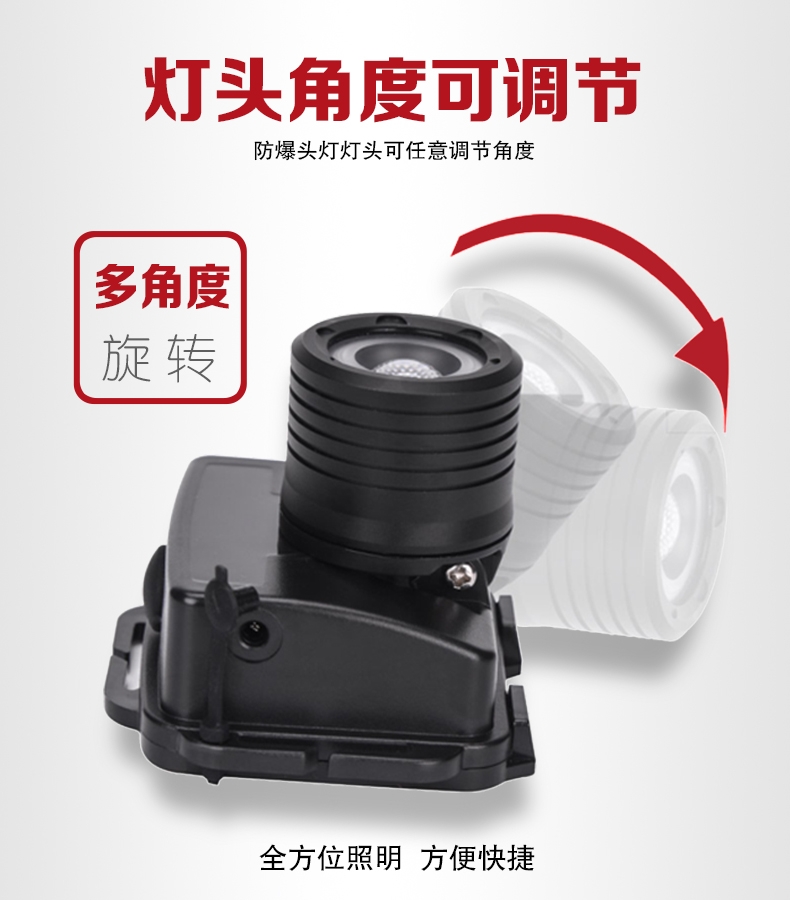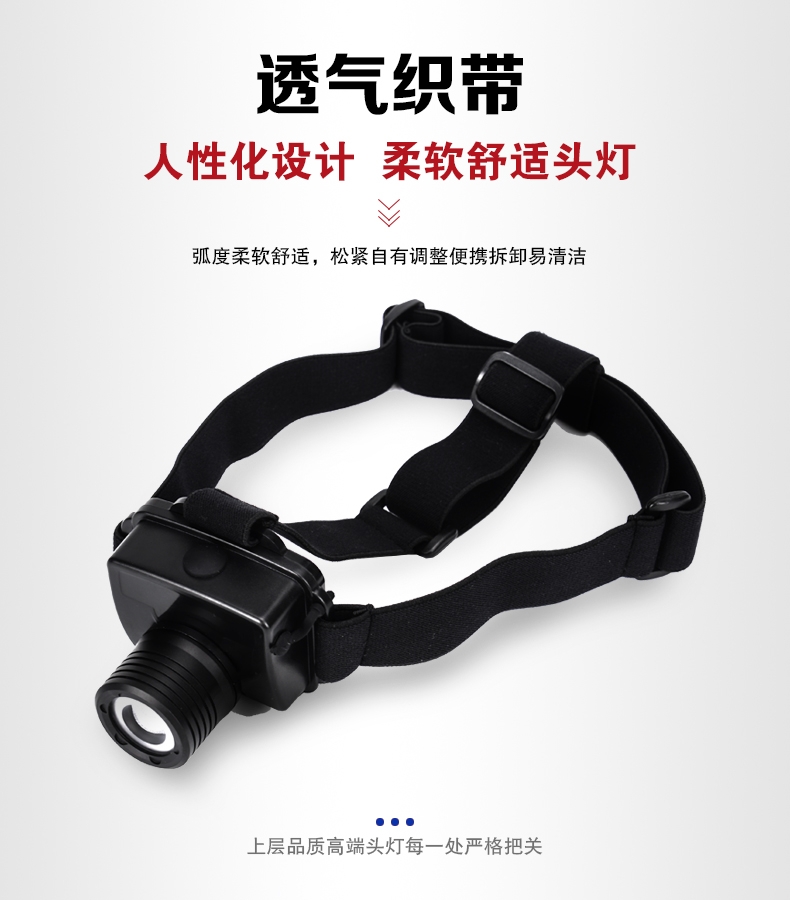 轻便耐用:外形灵巧美观,体积小、重量轻,人性化设计,可直接头戴或安装在头kui上使用,头带柔软、弹性好长短可调,照明角度可随意调节,适合头部佩戴使用