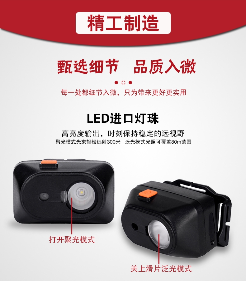 功能独特:可实现聚光和泛光两种照明方式,可滑动头部滑块可快速实现泛光聚光的调节,满足多种工作需求。
