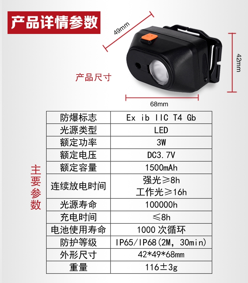 使用方便:人性化设计,可直接头戴或安装在头盔上使用,照明角度可随意调节;