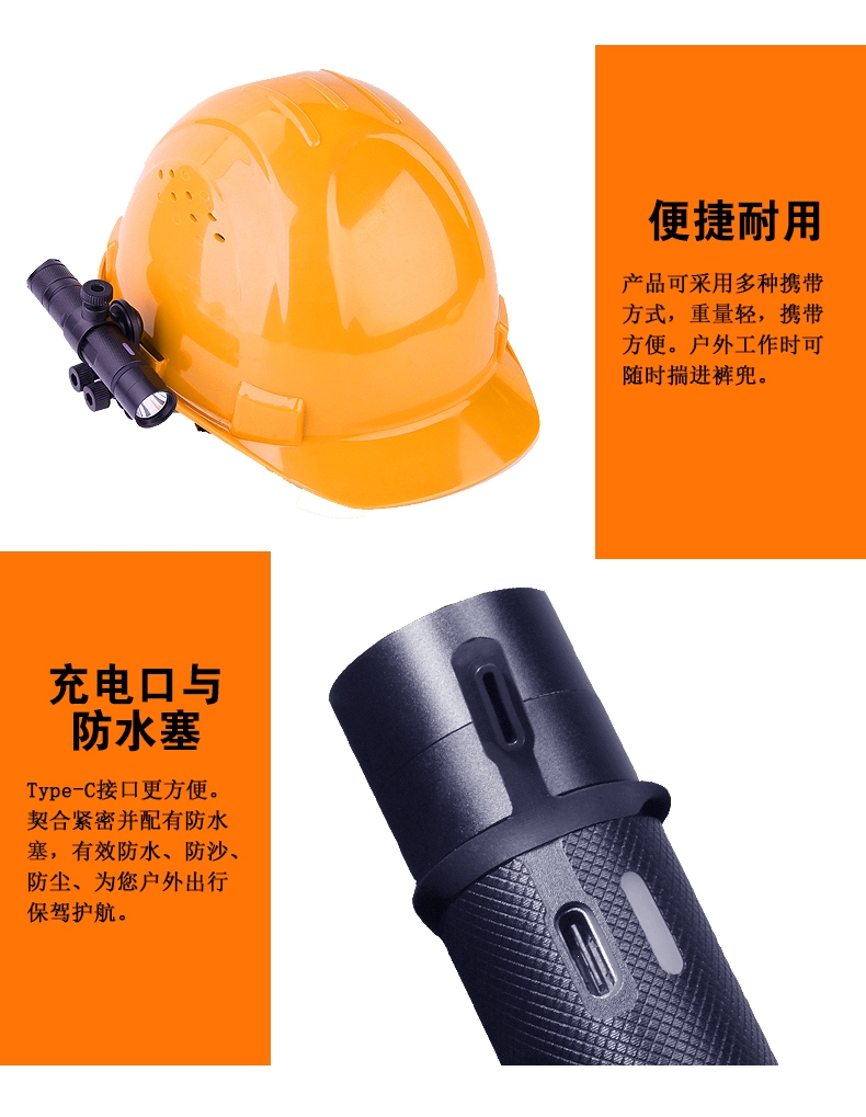 轻便耐用:可采用手持、腰挎、袋装、头盔佩戴等携带方式携带非常方便;