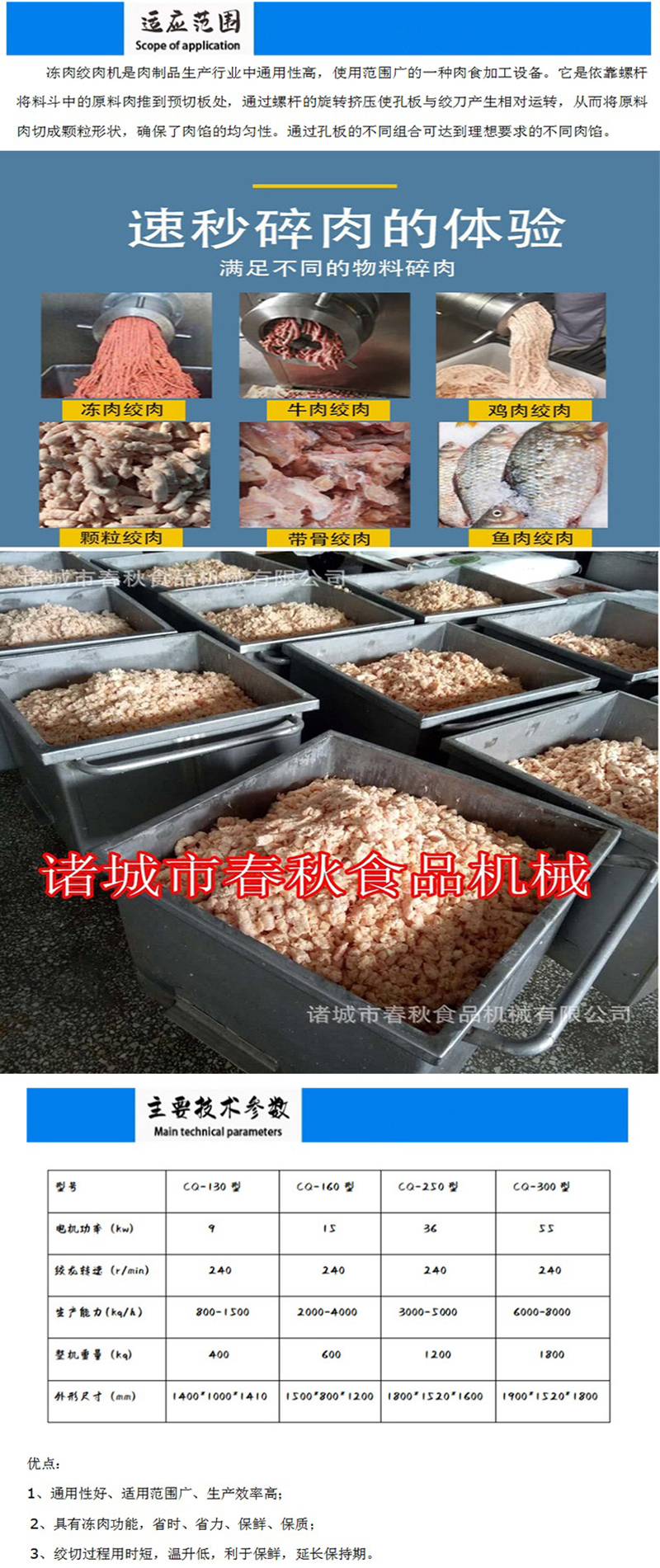 产品用途 | 各种肉类物料绞成肉颗粒 | ||