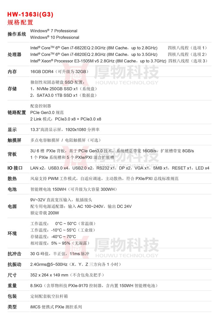 重量 | 8.5KG(含厚物科技PXIe-9170控制器,含内置150WH智能锂电池) | ||