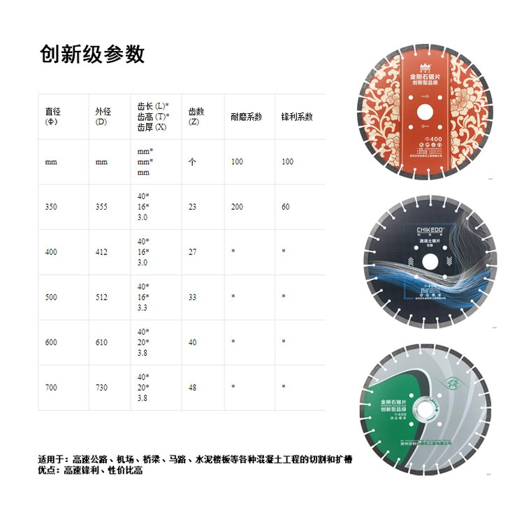 创新级优点 | 高速锋利 性价比高 | ||