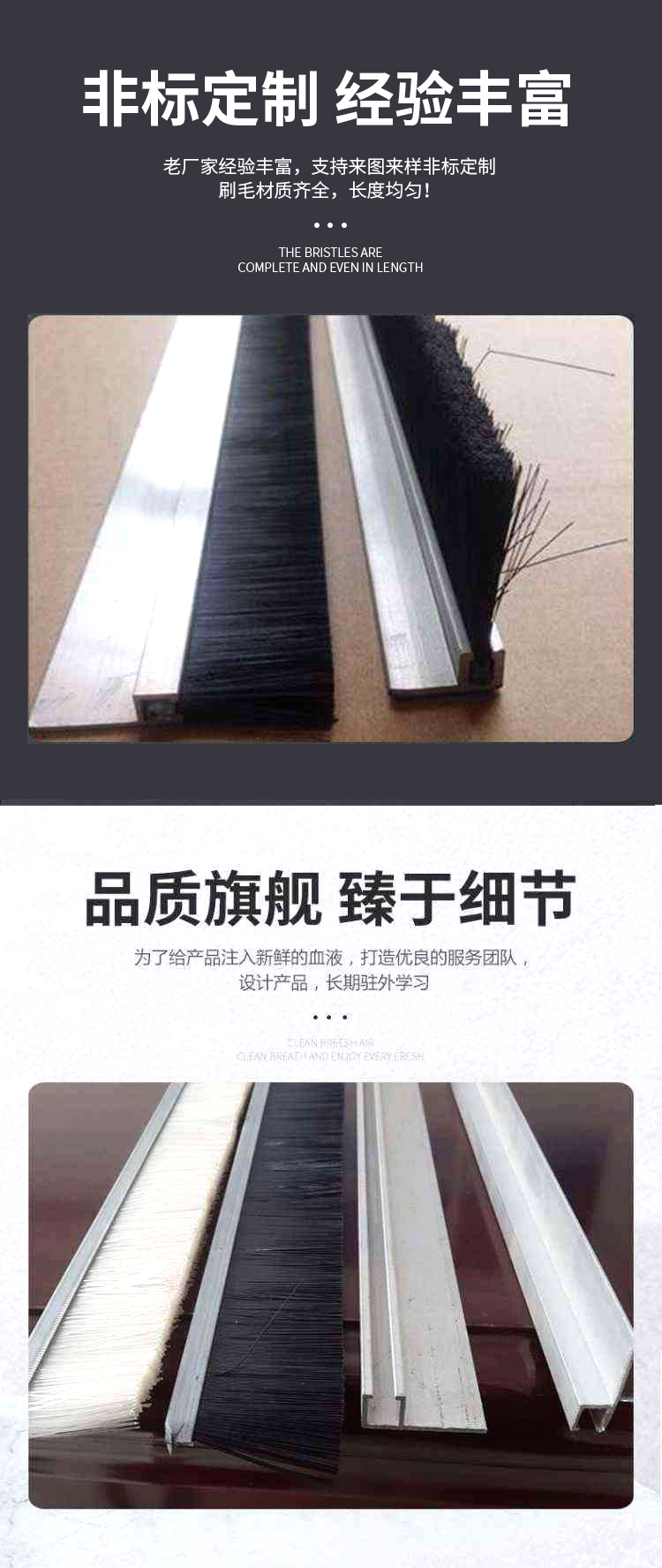 h型铝合金条刷门底密封刷条尼龙机械防尘毛刷工业条刷