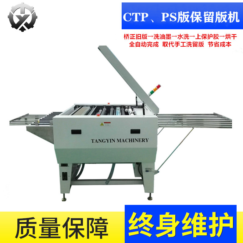 保留版系列CTP、PS版自动保留版机是专门设计来清洁保留印刷过的PS版作用,道过程为清洁PS版上的油墨,接着为清洗过程, 清洗PS版上的残渍以及清洁液,第三道为上保护液(GUM)→自动烘干系统,免除人工废时废力作业方式,提高工厂效能,节省成本,方便作业管理。