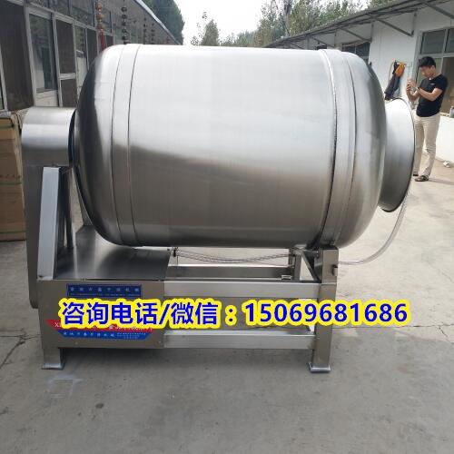 真空滚揉机整机采用不锈钢制造,结构紧凑,滚筒两端均采用旋压式封帽结构,增加滚筒内的摔打空间,使滚揉产品的效果均匀,噪音小,性能可靠,操作简便,使用效率更高。具有变频技术功能,肉制品真空滚揉机机器使用安全,方便节能。滚揉总时间到后,滚筒将会自动停止,并保持筒内为真空状态并继续计时,直至设定的静置时间到,调理品滚揉机厂家,发出信号,提示操作人员可以开盖取出桶内的物料。肉制品真空滚揉机此时按下消真空按钮就可消除真空,这时可卸掉筒盖,接着按下卸料按钮,滚筒即按出料运转方向(顺时针方向)旋转,从而将肉料自行送出,落入接在筒口下面的肉车等容器内,完成了整个工艺流程。