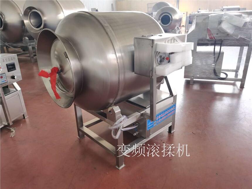 1.真空滚揉机是在真空状态下,将肉块通过倾斜式滚揉(按摩)的循环运动,起到使肉质嫩化、充分吸收盐水、起到浸提蛋白的作用,利于增加肉品的保水性。