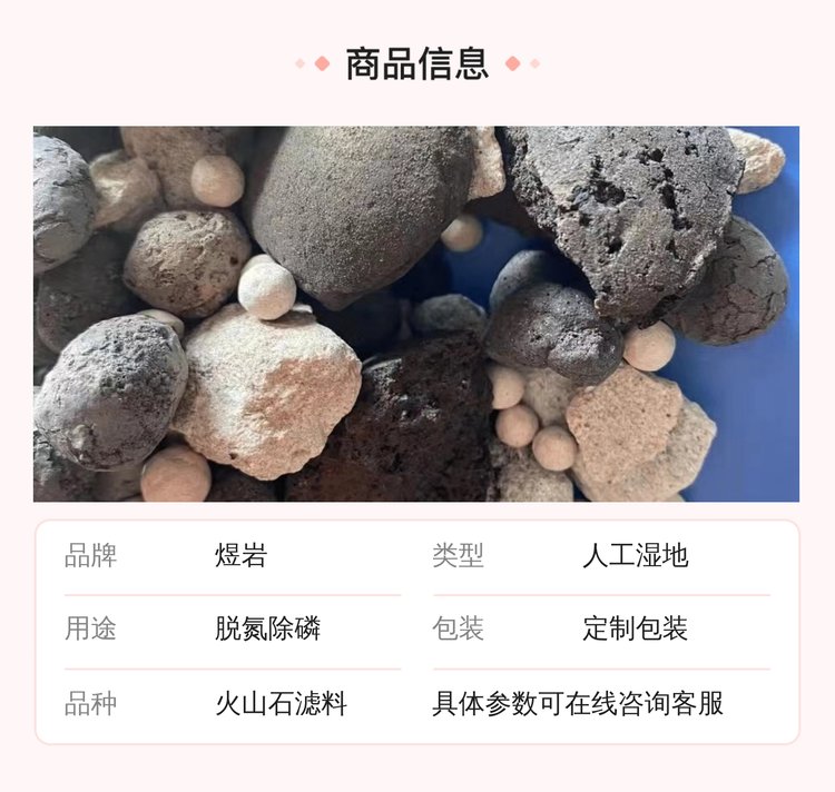 砻笆岩是用先进的技术手段将基因工程、细胞工程、酶工程、发酵工程等新技术融合应用开发的新型人工湿地填料。相比于碎石、砾石、陶粒、沸石等传统人工湿地填料,应用砻笆岩的湿地对氮磷营养盐的去除率大大提高。