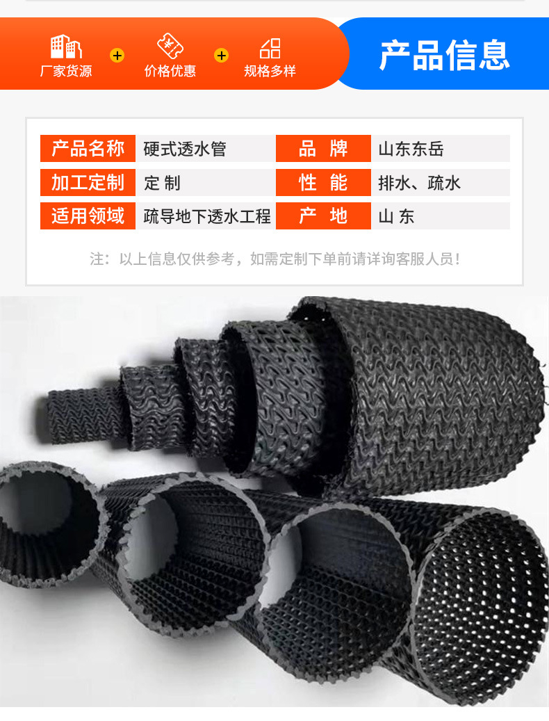 曲纹网状硬式透水管HDPE硬管渗排水盲管直径50-200mm