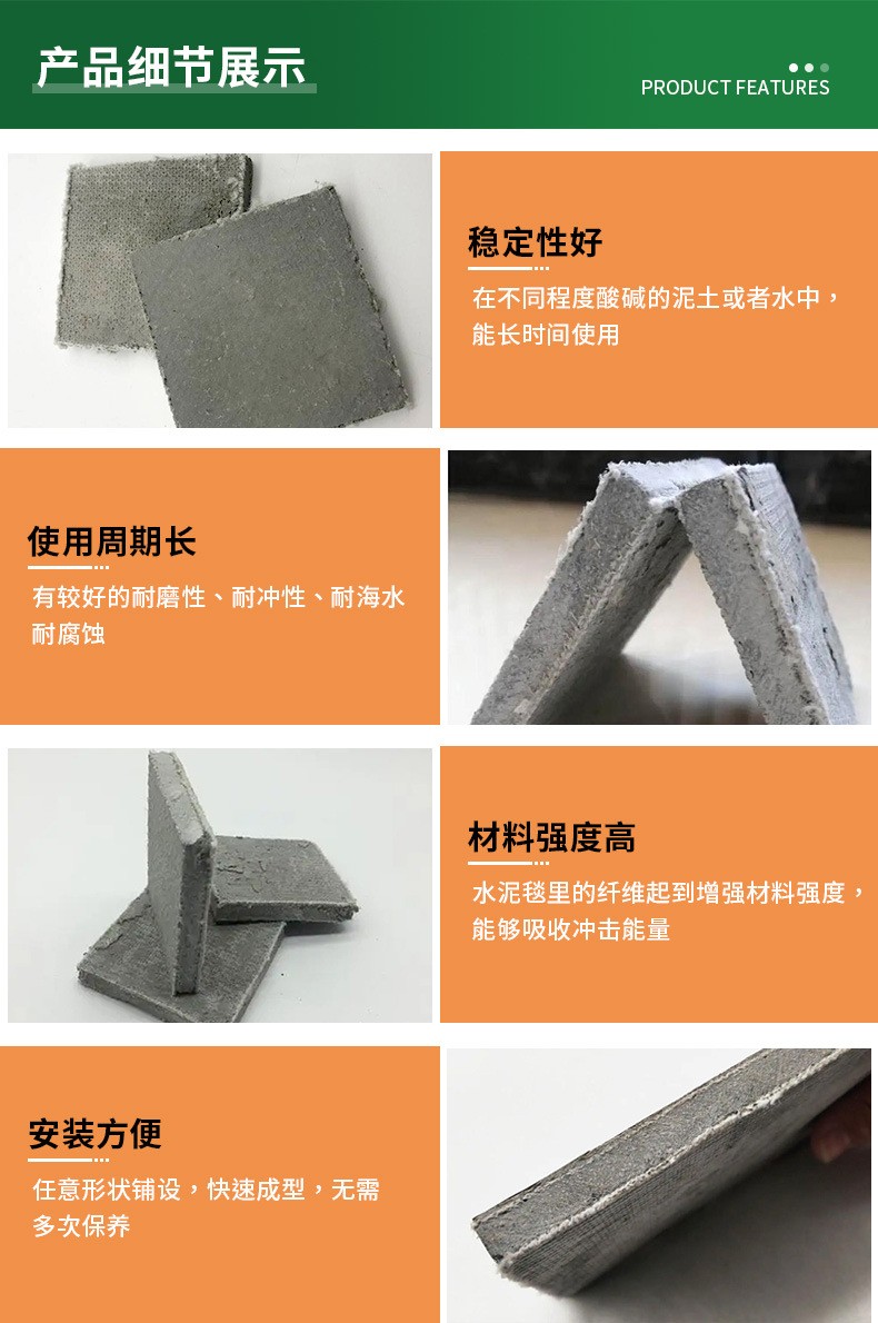 新型护坡水泥毯鱼塘防渗毯柔性水泥纤维毯5-12公斤