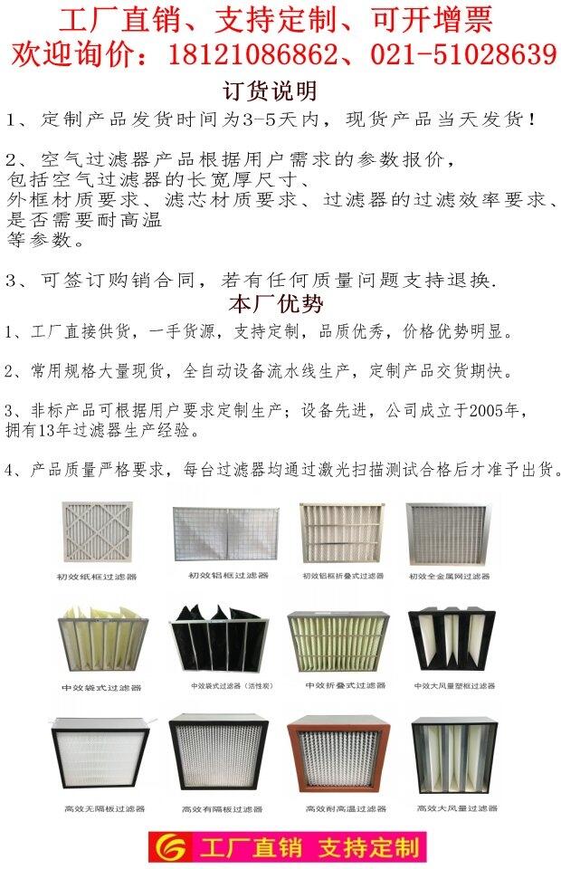 1、上海工厂(恒歌)专业生产各种规格空气过滤器产品;您所看到的本店产品,均有工厂直接供货,出厂价直接给到您!绝无其他中间环节。
