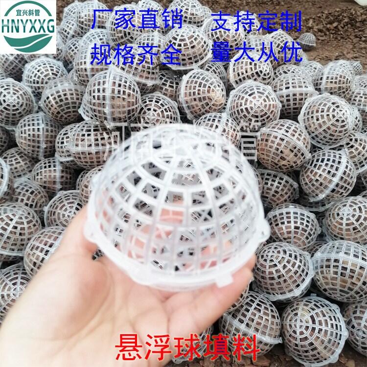 ???? 该填料系列又具有耐腐、耐温、耐老化、高强度的高分子聚合物注塑而成,分内外双层球体,外部为中空鱼网球体,内部特殊工艺制成的弹性毛丝体组合而成。主要起生物膜载体的作用,同时兼有留悬浮物的作用,具有生物附着力强、比表面积大、孔隙率高、化学和生物稳定性好、经久耐用、不溶出有害物、不引起二次污染、防紫外线、抗老化、亲水性能强,阻力小,布水、布气性能好,又有功割气泡作用等特点,在使用时直接投入水中,在水里似沉非沉,能全方位自由活动,无死区。可试水质浓高低和水量的增减,填料可多可少。实际投放量为池体积的30%-70%,进出口需用格网拦住,以免随水漂走。