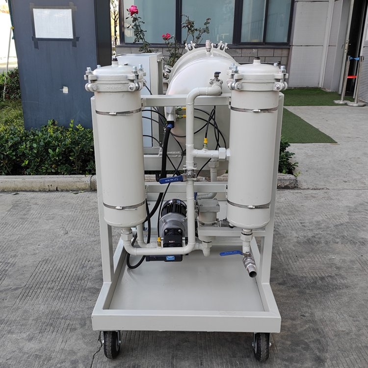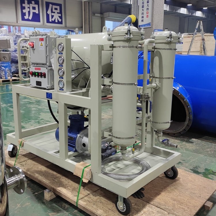 油液中水的存在会引起氧化,使油液变质,减小润滑油膜厚度,降低润滑性,引起油液变性聚合而成大分子,使液体粘度改变,形成有机酸,腐蚀金属表面,降低或丧失油液介质电强度。我公司研制的聚结脱水滤油机集精密过滤和高效脱水两种功能为一体,可有效清除油液中的颗粒杂质和乳化水、游离水,对于含大量水分的油液(含量可达15%),其分离速度是传统分离方法的几倍到几十倍,因而在汽轮机油及变压器油的净化、液压润滑系统油的除水及除杂质过滤、提高油液使用寿命等方面具有广泛的应用。