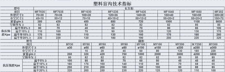 塑料盲沟是由乱丝热熔后相互搭结而形成的框架结构,外包裹一层土工布。经土工布过滤成清水进入塑料盲沟内,排放也去。透水管的断面可以根据工程需要做成各种形状,主要为长方形和圆形。该材料克服了传统盲沟的缺点,具有表面开孔率高,集水性好,空隙率大,排水性好,抗压强,耐压性好,柔性好,适应土体变形,耐久性好,重量轻,施工方便,工人劳动强度大大下降,施工效率高,因而受到工程局的普遍欢迎,并得到广泛的应用。