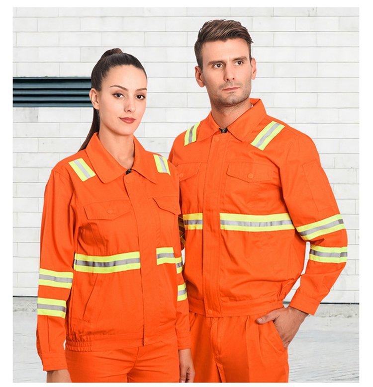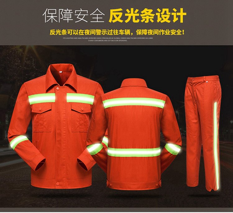 2、工作服上必须带反光条,反光条能在烈日或者夜晚上,能起到很好的保护作用。