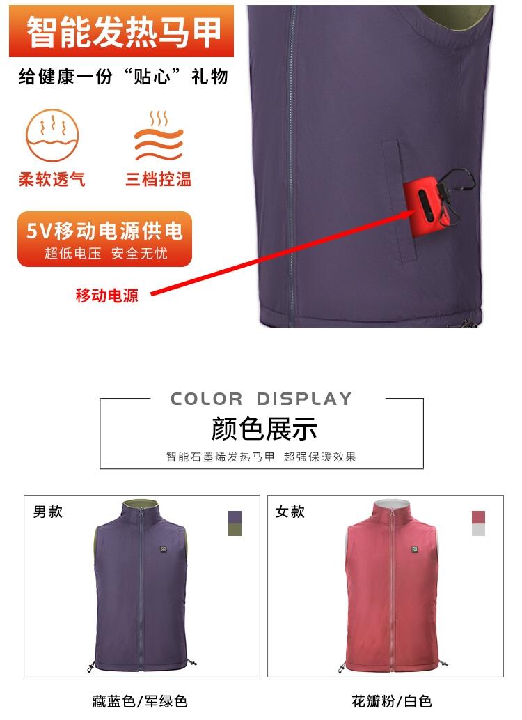 泰安浩宇服饰新款智能三挡控温加热马甲石墨烯碳纤维加热服