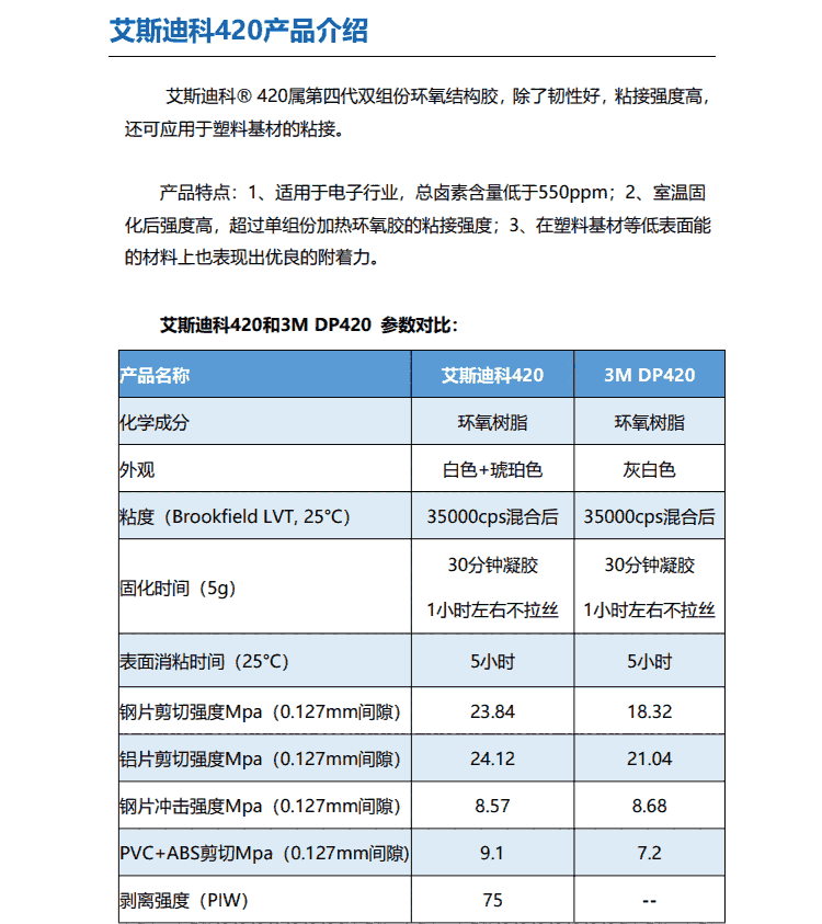 艾斯迪科420环氧胶的特点: