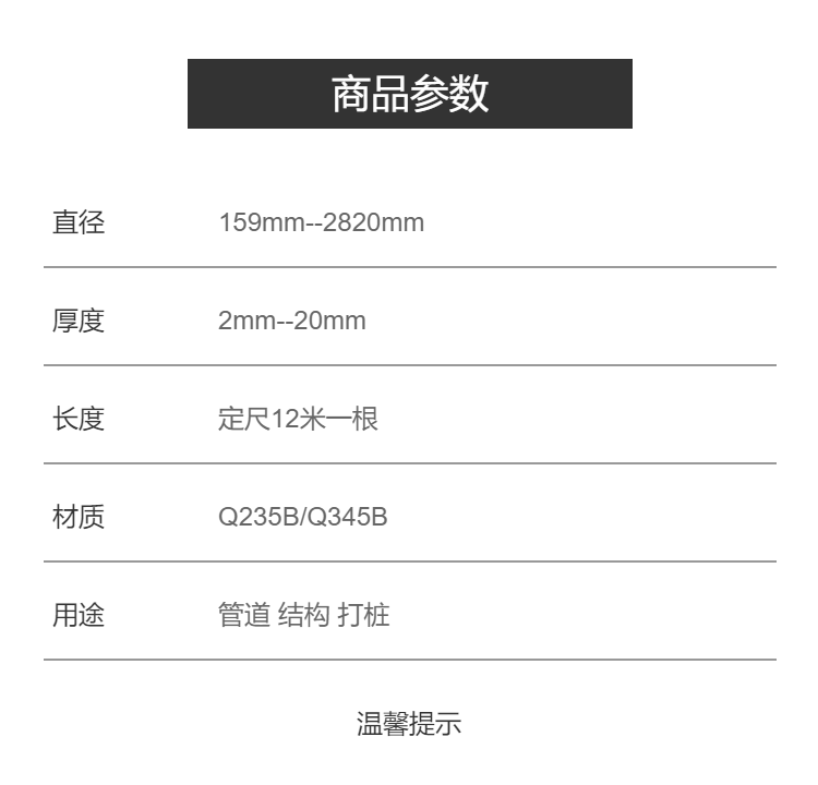 用途 | 各种管道 | ||