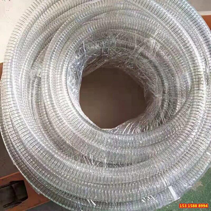 PU食品级钢丝管内壁透明平滑,具有耐压、耐油、耐腐蚀、耐酸碱、不劈裂、不易老化、高抗张强度、抗撕裂强度等诸多优点。PU食品级钢丝管内壁用坚固弹性不锈钢钢丝螺旋包覆,使聚氨酯输送管更加耐压耐磨损,不分解任何气味和味道,非常柔软,质轻、易于打理,非常耐风雨和老化,绝对不含任何有害的物质。