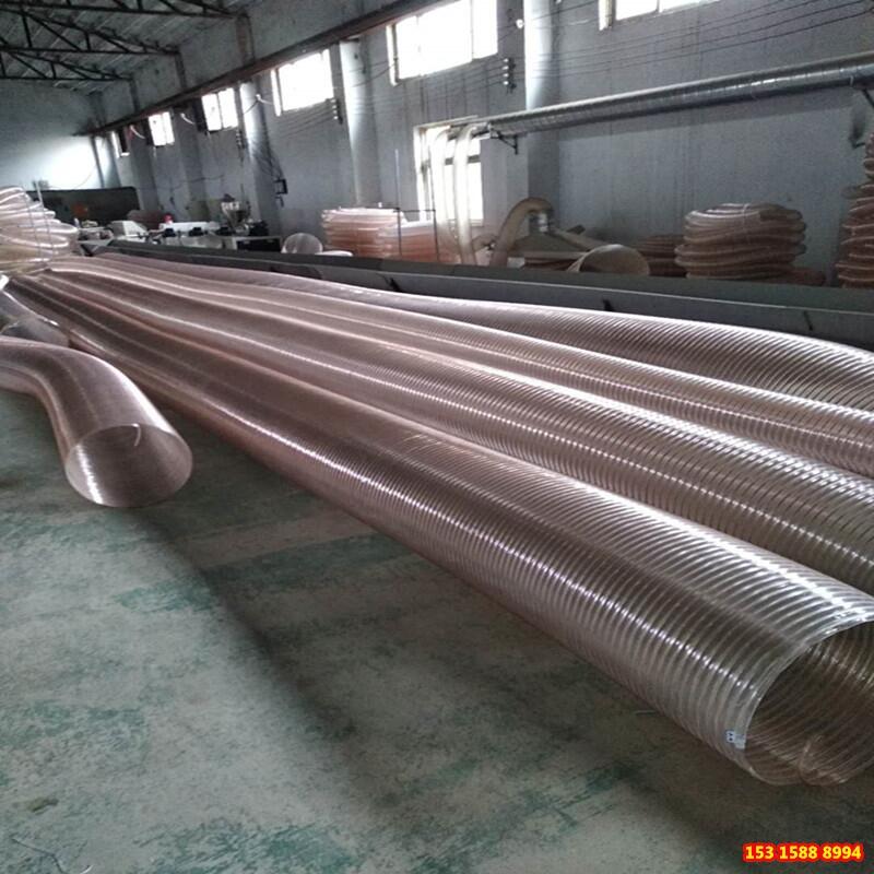 透明钢丝管采用德国进口PU原料制造,非常的耐磨而且耐高温,特别适用于磨损性非常大的的固体如灰尘、粉末、纤维、屑片和颗粒,气体和液体环境,供除尘和吸取式厂房,工业真空吸尘器,纸类和纺织纤维。PU吸尘管也可应用于建筑工程领域,在建筑和装饰领域中。