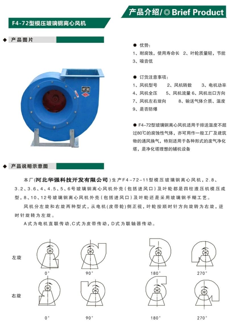 厂家直销玻璃钢离心风机F4-72型防腐防爆
