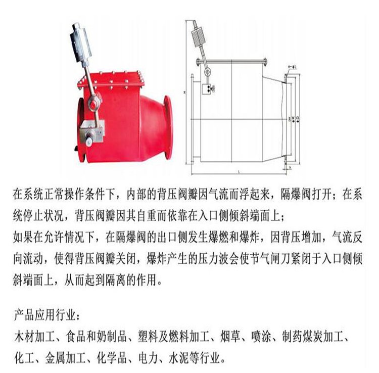 翻板式单向隔爆阀除尘管道爆炸隔离装置安全认证自锁式防爆