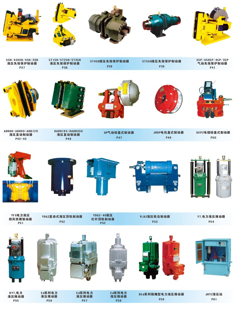 连接尺寸和制动力矩参数符合GB6333-86标准,技术要求符合 JB/T6406-2006标准;YWZ9系列电力液压制动器配套符合DIN15430标准的Ed系列推动器。
