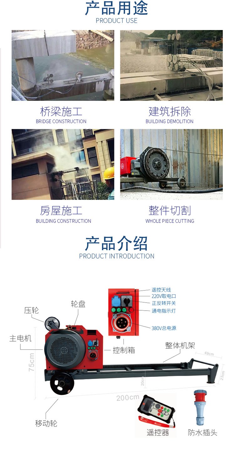 电动绳锯机22kw大功率钢筋混凝土桥梁石材切割机无线遥控电滚子
