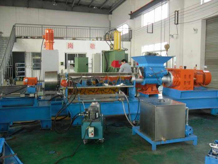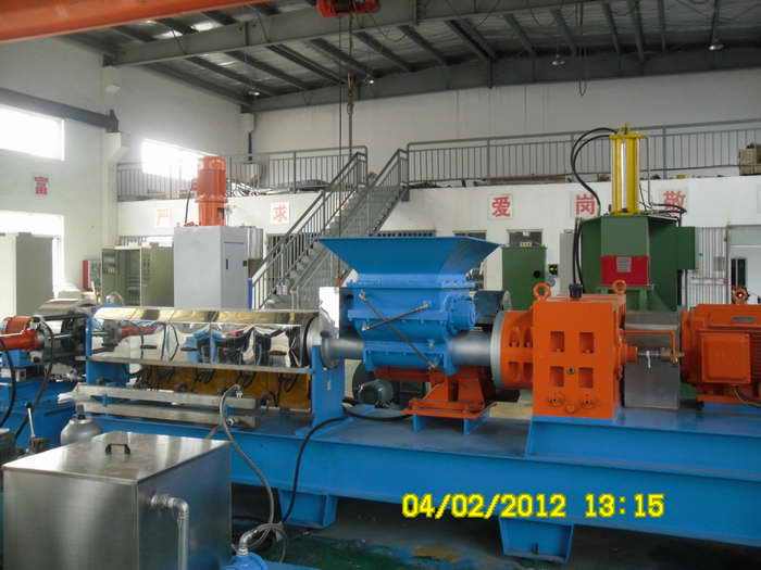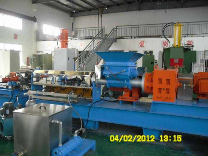 二,橡胶母料造粒机,橡胶母粒造粒设备(规格)分散效果优异,主机电流小,节能环保。此机台主用于橡胶母料造粒机,橡胶母粒造粒设备(规格)功能母粒,热收缩料,包括主机,锥双强制入料,模面热切等系统将密炼机撹好的原料经锥双挤入造粒机内,后经单螺杆挤出后切成粒子(13616289487)。