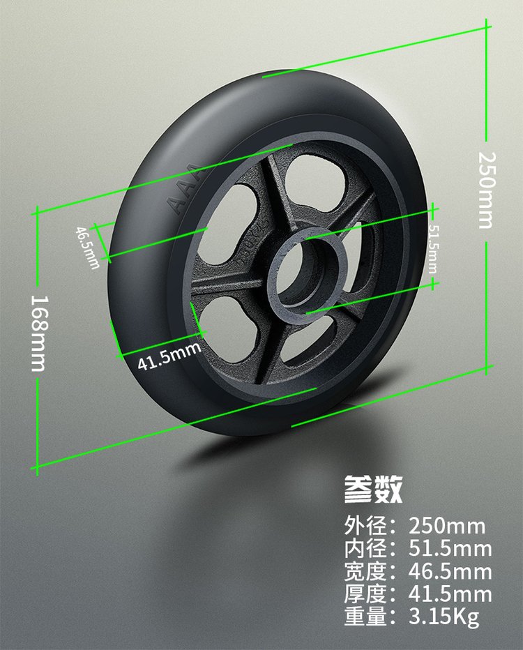 电动绳锯机轮子7.5寸橡胶轮板车轮手拉小推车拖车静音脚轮滑轮