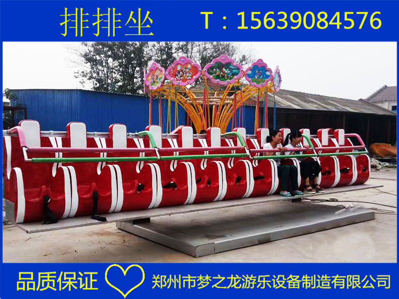 摇滚排排坐是一款中小型游乐设备,它是类似于转转椅,阿拉伯飞毯的游乐设备,它是针对小朋友而分娩的,格局可爱,布局安全,看法意义无穷。它是一款有一丁点抚慰的游乐设备,但是安全,它的运行速度比排排坐要慢.摇滚排排坐”是一种往来来往旋转式的大型游乐设备。由两根转臂连接着乘坐的一长排座椅,全体运动是在与地面垂直的平面长结束的。乘客排排坐在长椅上,配合摇滚的音乐上下左右往来来往旋转,回升降低的速度很快,感想沾染到超重与失重的瓜代,非常有抚慰性,在尖叫中感想沾染狂欢的气氛,身心全然的释放。