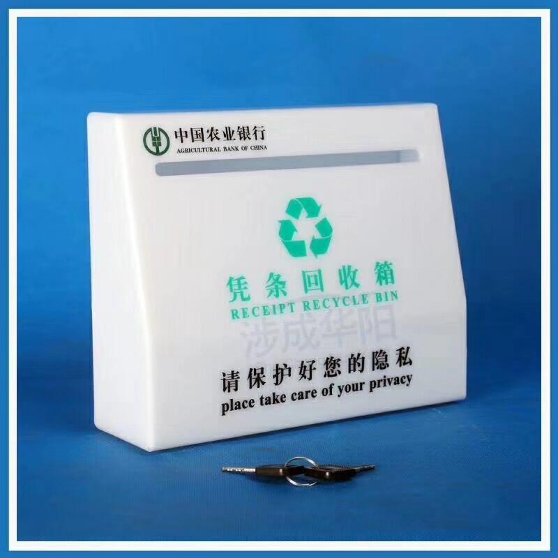 回收箱是一款银行标准化网点创建过程中的“缝隙产品”,它具有新颖的外观、安装简单、实用性强、保密性强等特点,已经逐步在客户信息保密中发挥到重要性作用,形成了标准化网点创建过程中的标准产品。