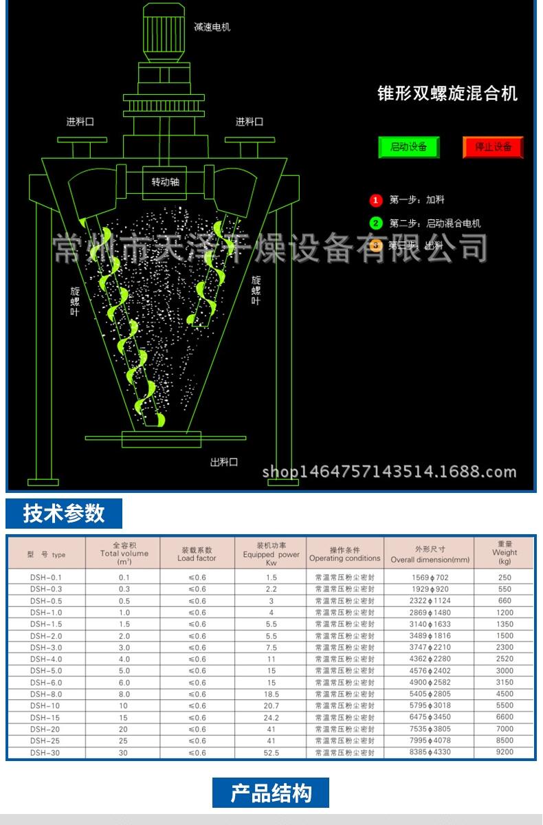 天泽牌锥形混合机 不锈钢双螺杆螺旋混合设备