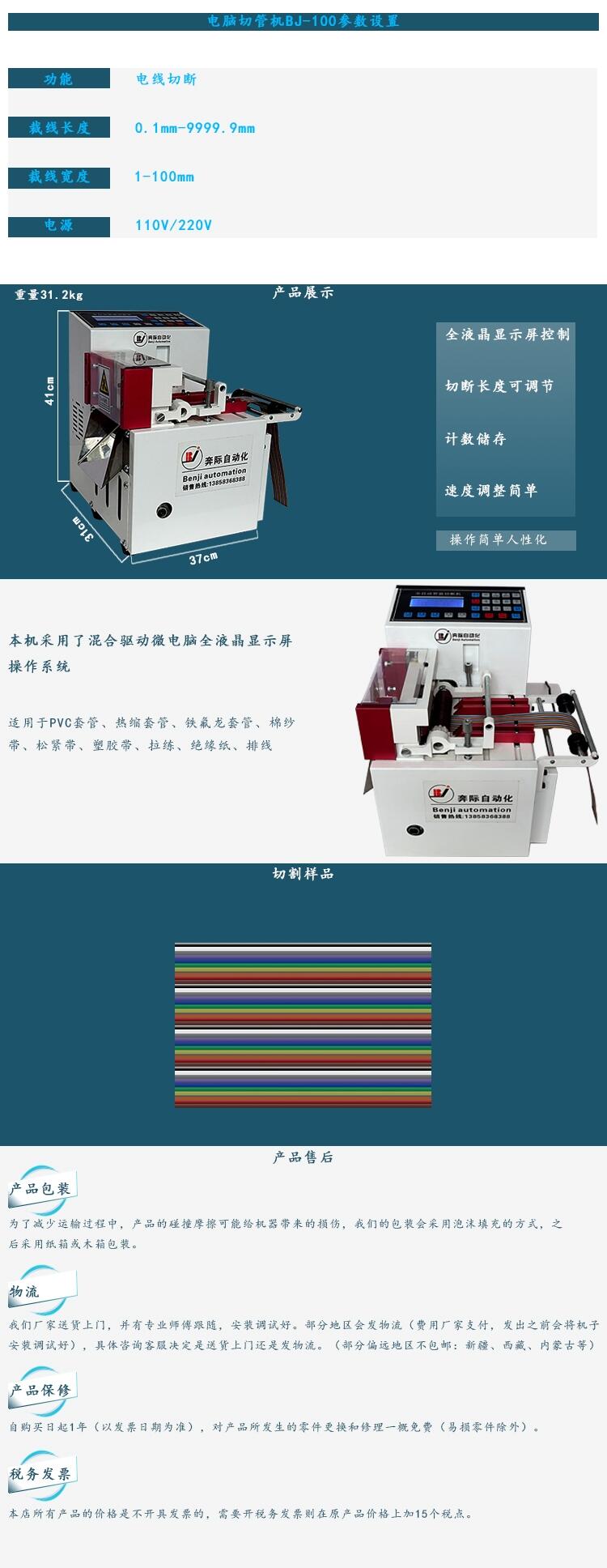 奔际 全自动电脑切管机智能切断机热缩套管绝缘纸排线切割机100